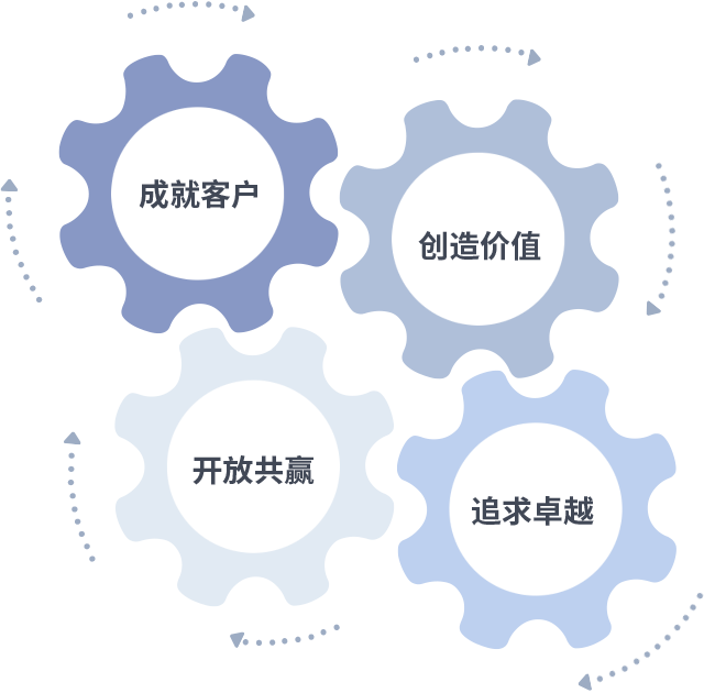 成就客户是一切决策的出发点,创造价值是衡量所有工作的标准,追求卓越是极悦娱乐做事做人的态度,开放共赢是极悦娱乐的格局也是最终的结果。价值观的齿轮环环相扣,推动着组织里的每个人不断向前。